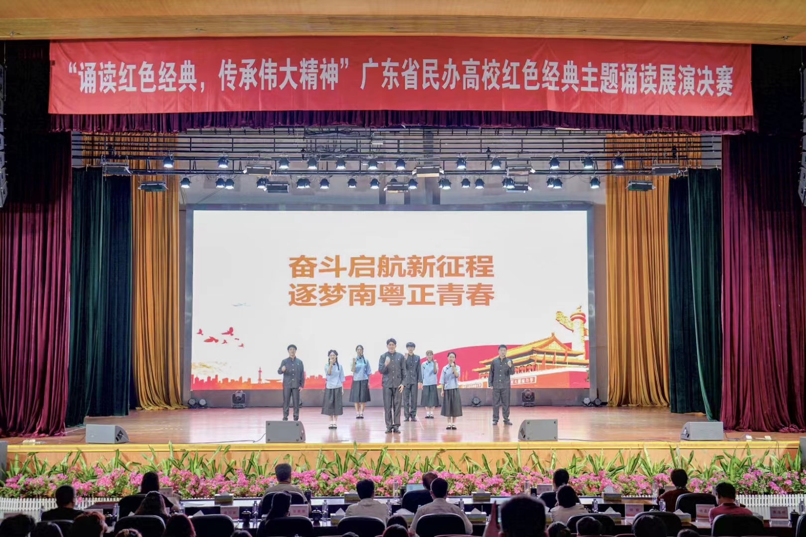 为深入学习贯彻党的二十大精神和习近平总书记关于青年工作的重要论述,弘扬爱国主义精神,展现青年学子风采,2023年5月27日,由广东省民办教育协会主办,协会党建工作专业委员会、马克思主义研究与教学工作专业委员会支持的广东省民办高校红色经典主题诵读展演决赛在广州城市理工学院学生活动中心举行。