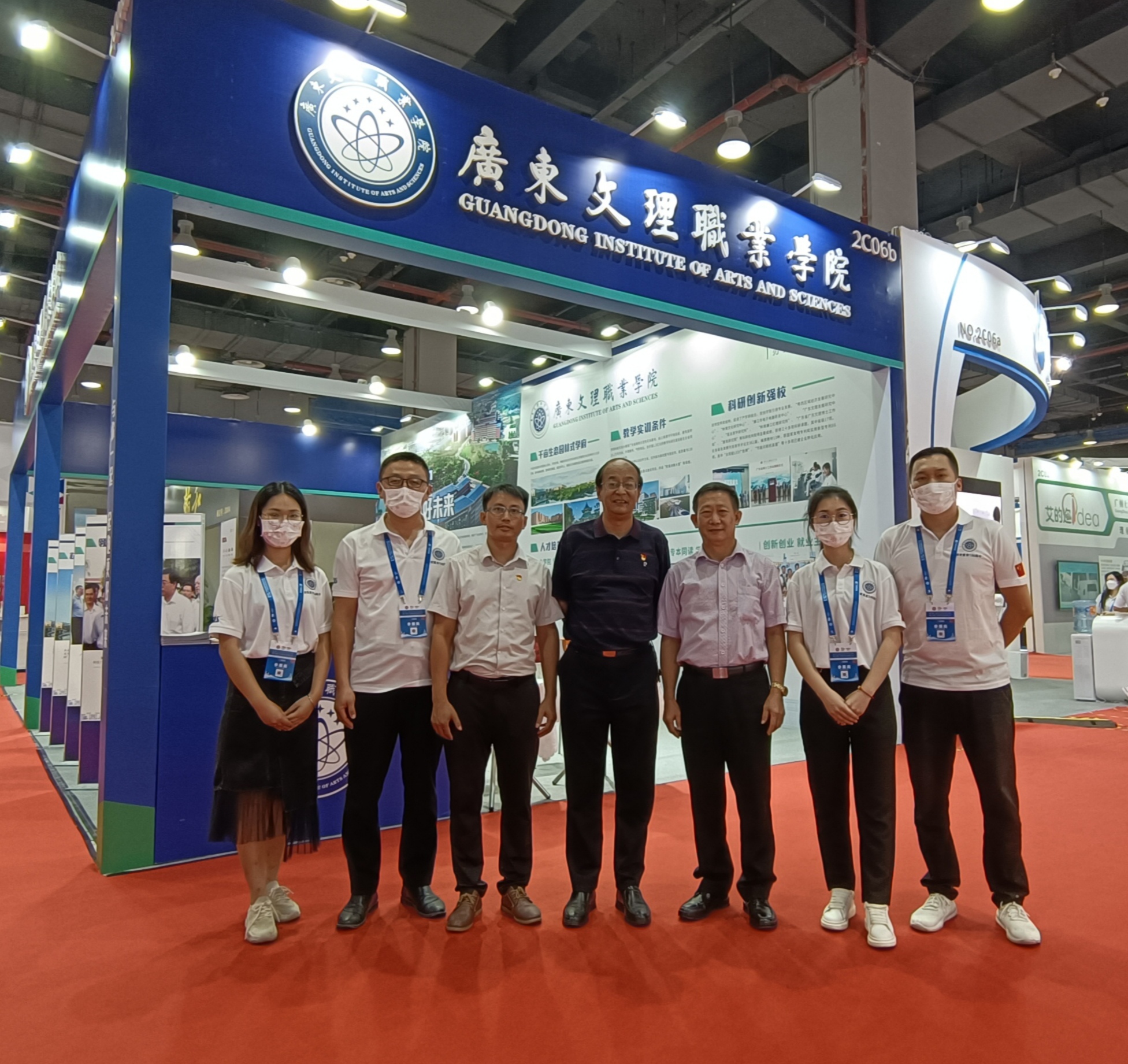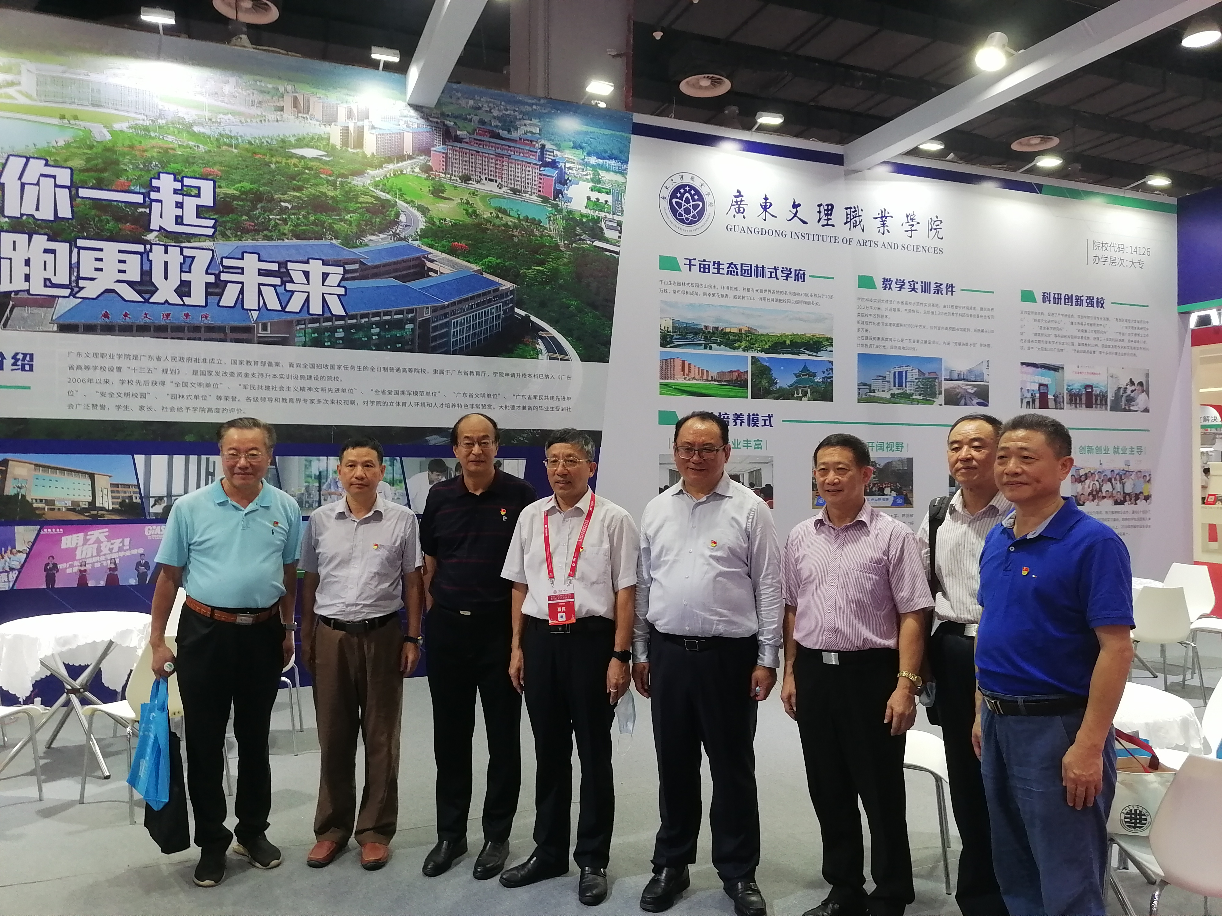 党委书记陈健和学校展位工作人员合影