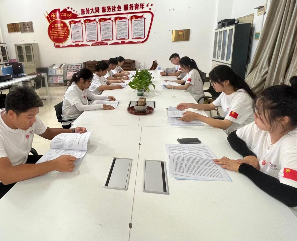 (图为“三下乡”队伍成员共同学习《中国共产党简史》为下一步工作做准备)