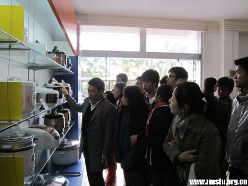 广东华强电器集团有限公司是广东省高新技术企业,专业生产电饭锅、电压力锅、电热水壶、抽油烟机、燃气罩具、电热水器等系类产品,是一家集产品设计、生产、销售于一体的大型家电企业,是全国最大的家电厨卫用具生产企业之一。公司负责人首先将我们带到了公司的荣誉认证和产品展区,公司取得的大量产品质量认证和社会荣誉令我院师生啧啧称赞。然后公司负责人带领我们参观了公司的生产线,包括电脑自动检测线、装配生产线和花壳车间等,工人熟练专业的操作技术给我们留下了深刻印象。