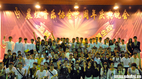 欢乐的时光过得尤为快,晚会已接近尾声。摇滚乐队用不同的风格为台下的观众演奏,演绎着摇滚的火热激情,再次把现场的高潮燃起,让整场晚会有着意犹未尽之意。在清脆爽朗的大合唱中,晨煜音乐协会的全体工作人员,晚会表演者,以及到场的领导嘉宾,老师合影留念,此次晚会成功落下帷幕。