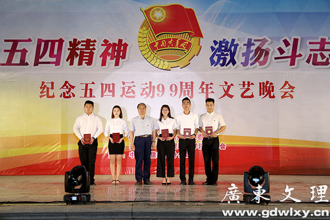 在颁奖环节,王南福副院长上台宣读关于表彰2017-2018年度湛江市、廉江市、广东文理职业学院“优秀共青团干部”等各项表彰的决定,并依次邀请颜大胜书记、刘周堂常务副院长、王南福副院长为同学们颁发荣誉证书。