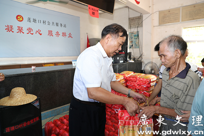 9月26日中秋前夕,广东文理职业学院、湛江银监分局、光大银行湛江分行主要领导心系困难群众,联袂来到对口帮扶的廉江市河唇镇莲塘口村,开展节日慰问活动,向贫困户发放节日礼品并与村委扶贫工作负责人进行座谈。