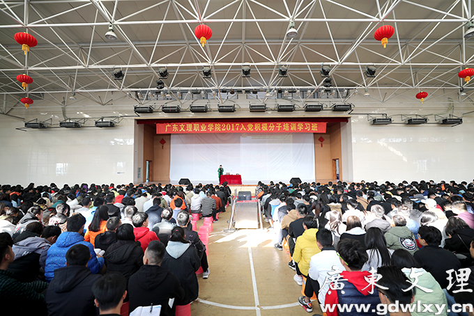 12月17日上午,广东文理职业学院在汇珍苑大礼堂举办2017入党积极分子培训学习班。培训班由中共湛江市委直属机关工作委员会副书记吴璇瑛主讲,全院1000余名入党积极分子参加了培训。