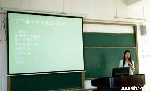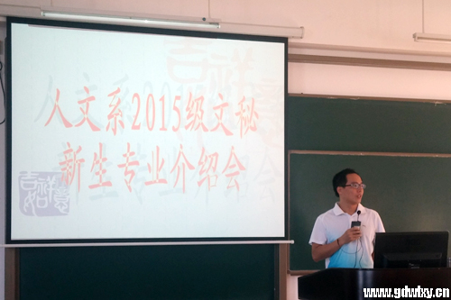 最后,李贵龙老师代表系主任再次欢迎2015级文秘全体新生来到人文系,祝愿同学们学有所成,并对本次专业介绍会作了总结。他指出,文秘专业学生一要学好专业知识,二要学会用“两条腿”走路(指考取高级秘书证和练习写作)。大会最后在和谐、热烈的气氛中落下帷幕。