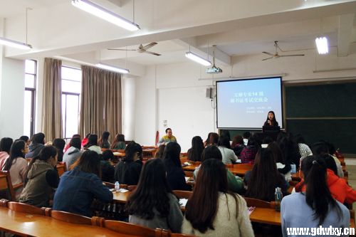 交流会伊始,李贵龙老师简要介绍了本次活动的意义。接着,王小红同学与大家分享了她通过三级秘书证考试的经验,认为熟读书本、做题巩固、练习打字是通过考试的窍门。张婷同学也表达了类似观点,并强调在做题中检验书本的熟悉程度,遇到错题或不熟悉的内容一定回归书本寻根问源。谢静芸、刘美烨两位同学发言,认为自己没能一举通过考试的原因主要是努力不够、没有及时回归书本把不懂的问题搞懂。钟丽婷和邹婷同学也分别介绍了自已的备考心得。