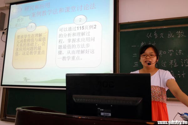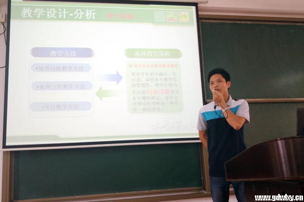 与邓金虹老师的老练对比,去年新来我系任教的郑秀桃老师则是“小清新”。她在说课形式的把握、比赛准备方面稍有欠缺,但语言表达清晰、条理性也较强,充分显示出年轻人的自信。