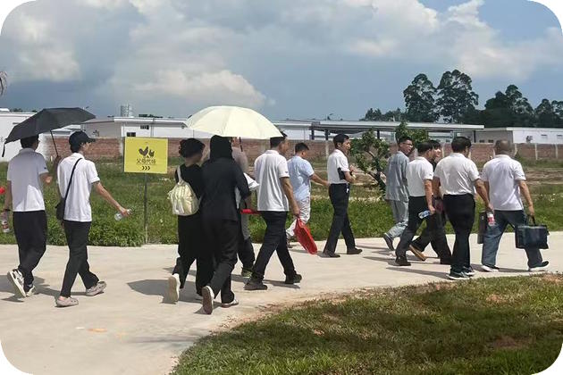 大家首先参观了湛江鸡产业园的种鸡舍。产业园相关的负责人给我们介绍了培育湛江鸡的整个流程。该公司通过科学的养殖技术和先进的管理模式,显著提高了湛江鸡养殖效率和产品质量。