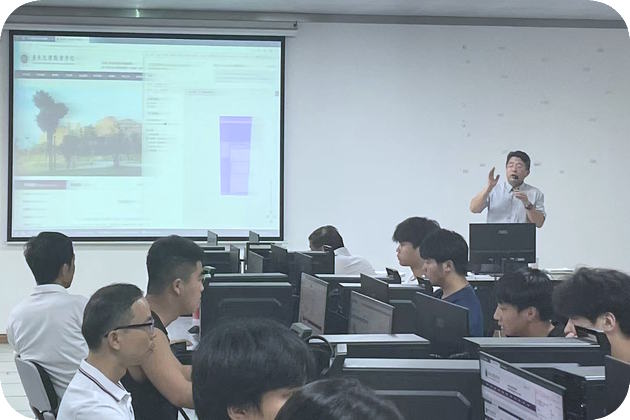 在吴老师讲完后,邀请王寅峰教授来授课。王教授接过吴老师的话筒,开始给同学们讲授有关HTML5网页设计的课程。