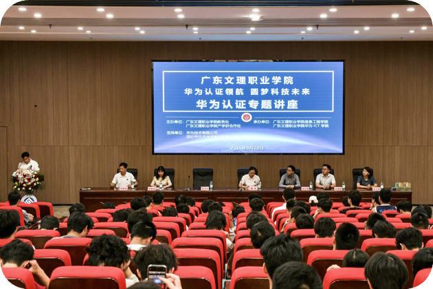 随着ICT行业快速发展,华为认证已成为全球ICT领域的“黄金通行证”。广东文理职业学院华为ICT学院作为校企合作标杆,致力于培养高素质技术人才。5月28日下午,由校教务处、产学研合作处主办、信息工程学院、华为ICT学院承办的华为认证讲座专场活动,在第二教学楼学术报告厅拉开序幕。