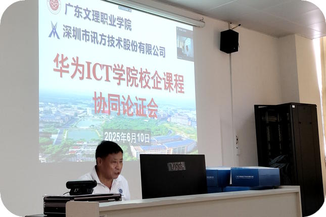 为了加强校企课程共建进程,促进广东文理职业学院华为ICT学院的发展,6月10日上午,我院与深圳市讯方技术股份有限公司(以下简称讯方公司)共同举办了广东文理职业学院华为ICT学院校企课程协同论证会,会议采用线上线下结合的方式。
