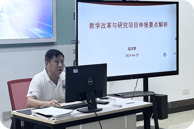 本次会议主要议程是听取马院长的报告。马院长首先用一个多小时的时间作了关于“教学改革与研究项目申报要点解析”的讲座报告。