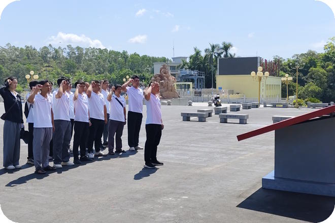 在雷州青年运河红色教育基地,我院全体党员同志在王海龙书记的带领下重温入党誓词,表达不忘初心、牢记使命的坚定信念和坚定决心。