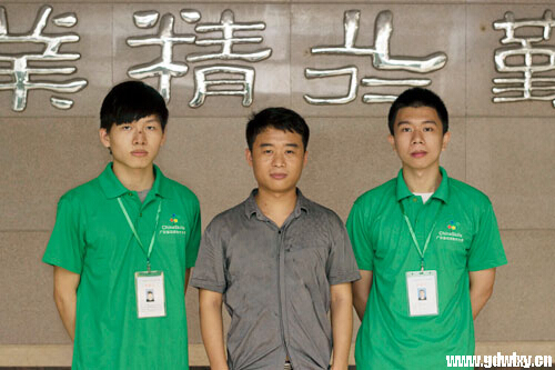 指导老师王猛(中)与获奖学生刘嘉润(左)、刘泽斌(右)合影