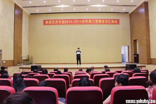 624下午,学院2013级、2014级表演艺术专业在科技实训大楼学术报告厅举办了一场音乐汇报会。出席音乐汇报会的嘉宾和老师有学院艺术中心主任周瑞洁、团委常务副书记兼声乐教师赵雅琴、表演艺术声乐老师何浪、表演艺术钢琴老师戴秋卡、表演艺术辅导员龙李盛。音乐汇报会由倪陈哲、王嘉慧两位同学主持。
