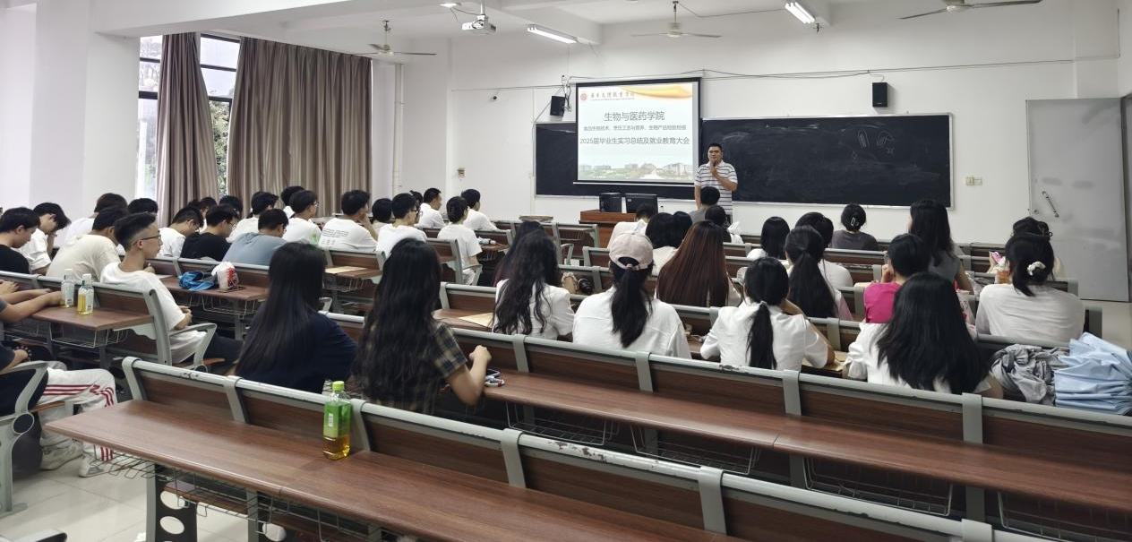 年 6 月 19 日 19 时,一场汇聚青春实习智慧的盛会在第一教学楼 B207 拉开帷幕。我院 2025 届(食品生物技术、烹饪工艺与营养、生物产品检验检疫)毕业生实习总结大会如期举行,张红老师、郑兵福老师、张广豪老师、谭川川老师,辅导员龙景辉老师,以及 2025 届食品生物技术、烹饪工艺与营养、生物产品检验检疫专业的 70 名实习生,2023 级和 2024 级学生代表齐聚一堂。大会由梁柱国老师主持,共话实习成长,展望未来发展。