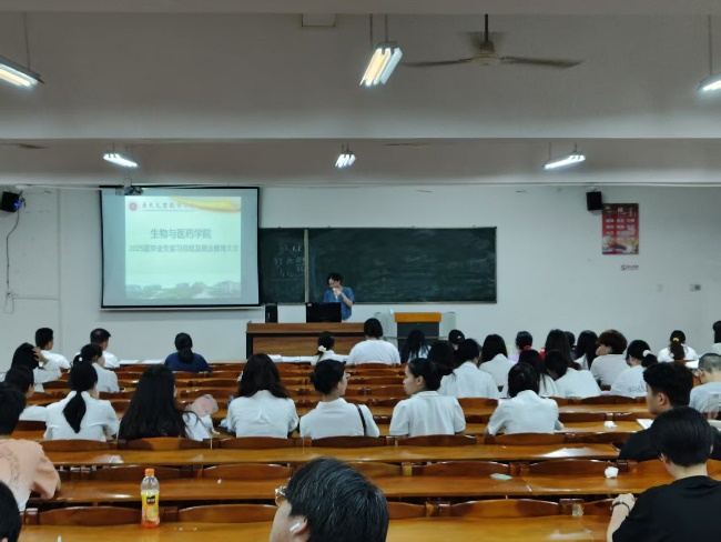 为全面总结实习经验、提升实践教学质量,2025年7月19日晚上7点,生物与医药学院在广东文理职业学院第一教学楼A304教室,成功召开了中药学专业实习总结大会。本次大会由陈道海院长指导,覃舒然主任主持,其它出席大会其它人员包括黄锦洲老师、徐晓燕老师、林结玲老师、李金梅老师、辅导员罗诗婷老师以及中药学专业学生153人。
