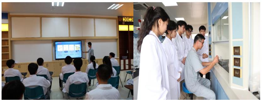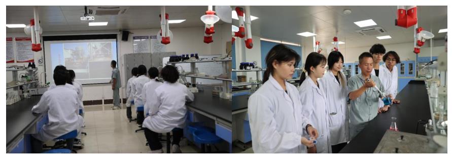 2025年7月1日,我院特邀广东名龙农牧有限公司育种场场长李科蒸、孵化厂厂长叶发明、父母代场场长封海宇三位资深技术专家来到我院生理生化、微生物技术等实训室,以实战技术教学为核心,为生物产品检验检疫专业学生带来湛江鸡产业中育种、生产管理、疫病防治等技术解析,这场产教深度融合的教学活动,标志着我院在地方特色产业人才培养上迈出关键一步。
