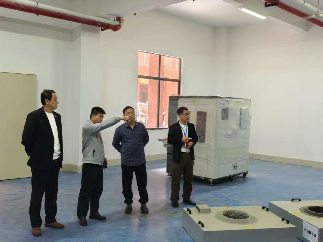 2025年4月2日星期三上午,广东文理职业学院李晓豁副校长、学院办公室柳正强主任、实训中心王达斌主任、智能制造学院杨根喜院长及相关人员一同巡视新建成的新能源汽车实训室。