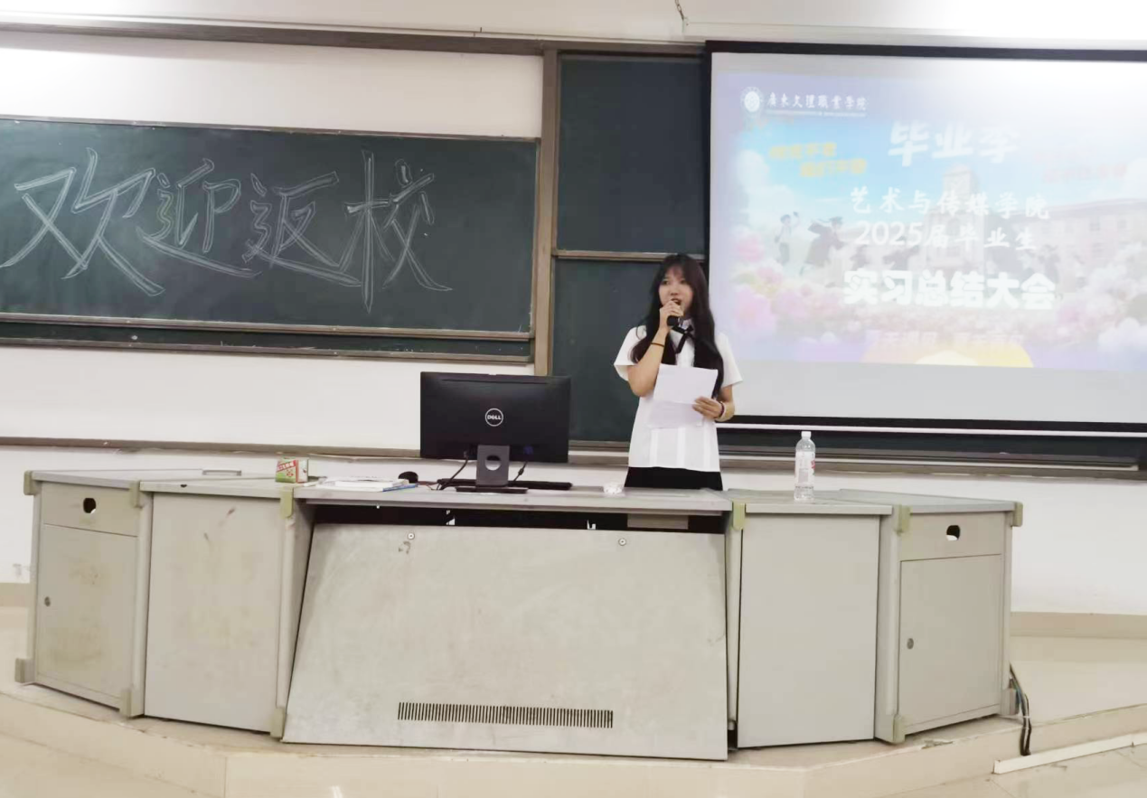 6月19日晚,艺术与传媒学院在第一教学楼A405隆重召开2025届毕业生实习总结大会。会议由谢京谕老师主持,汪俊林院长、朱兴财助理、毕业实习指导教师、辅导员及全体毕业生参会,共同回顾实习成果,总结实践经验。