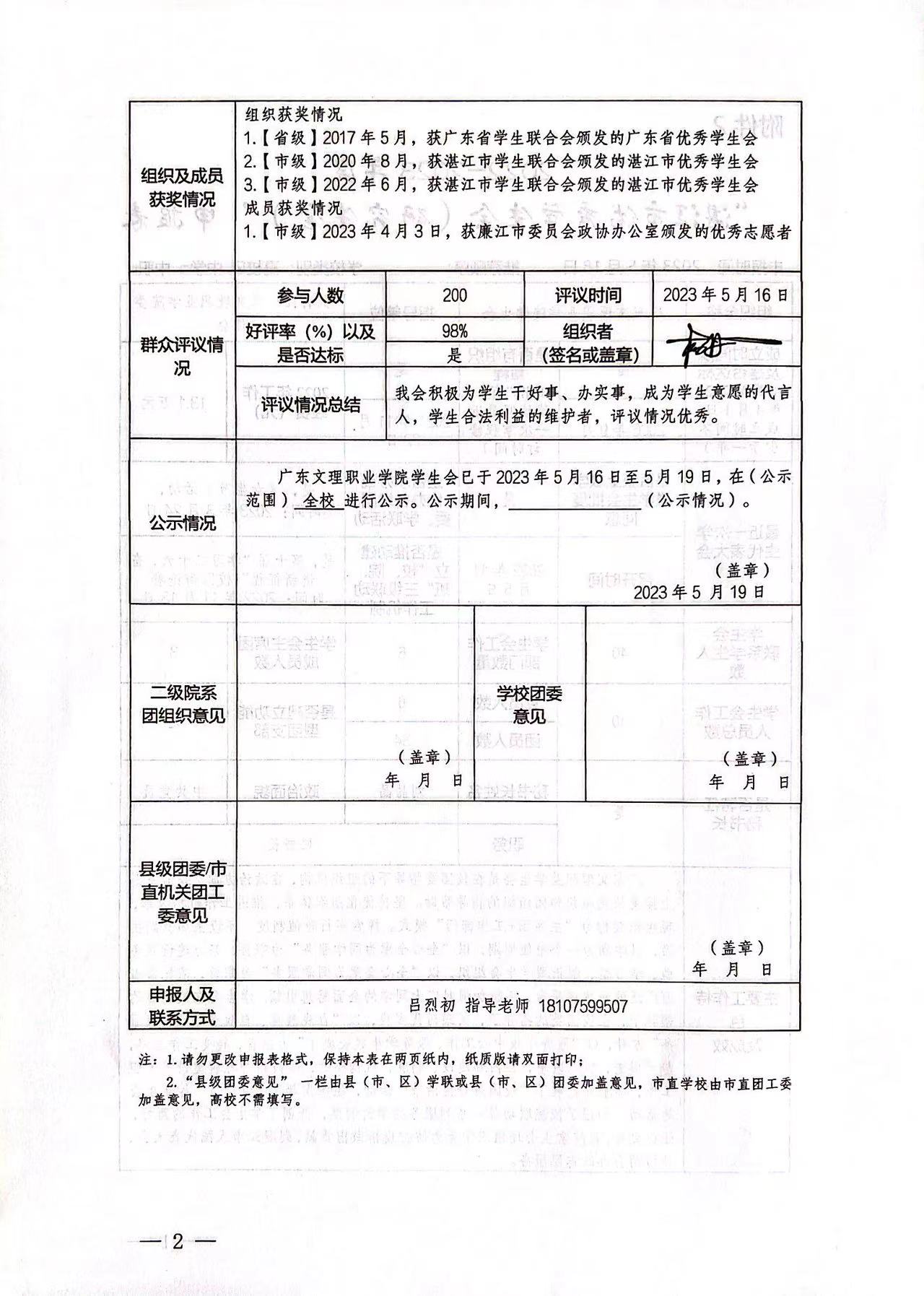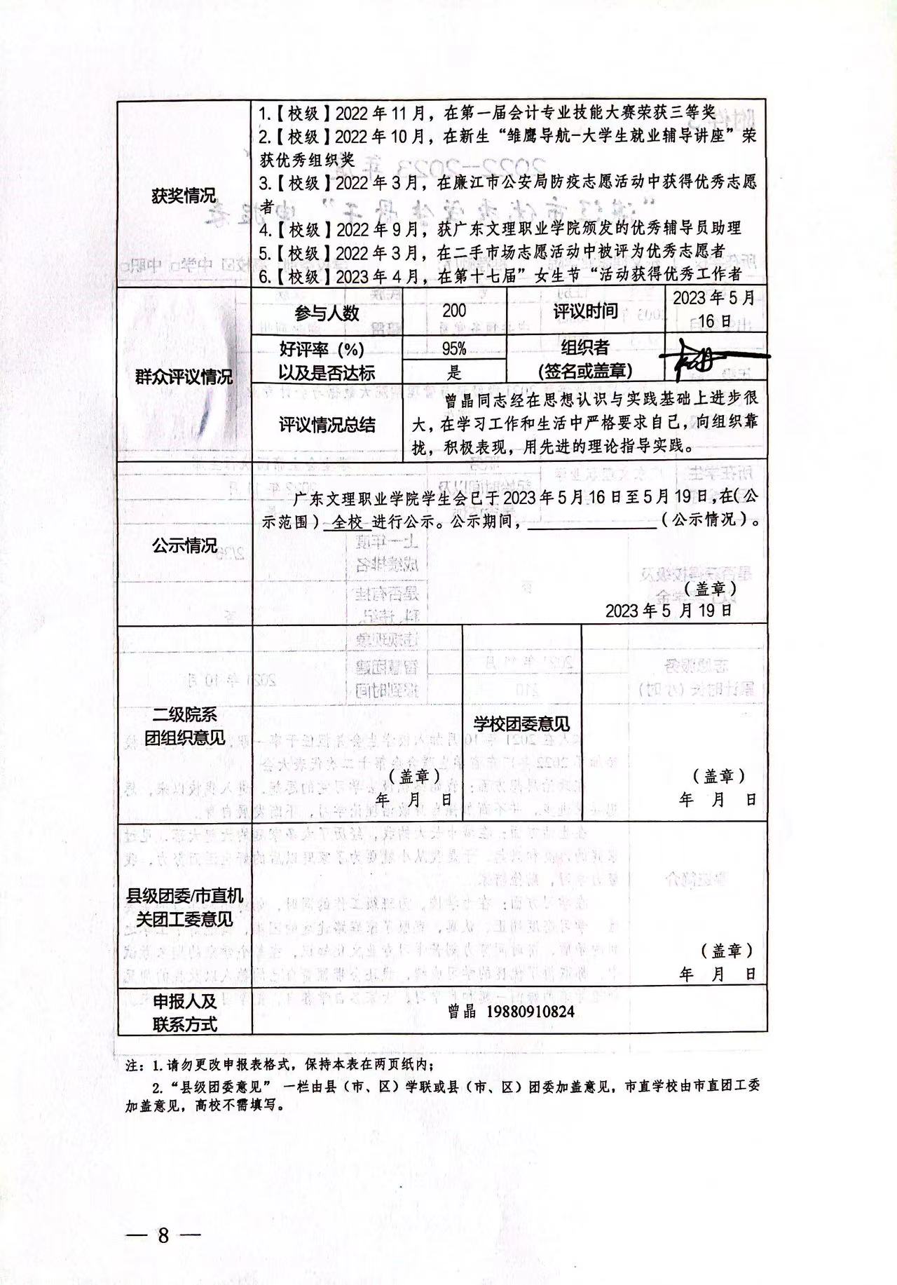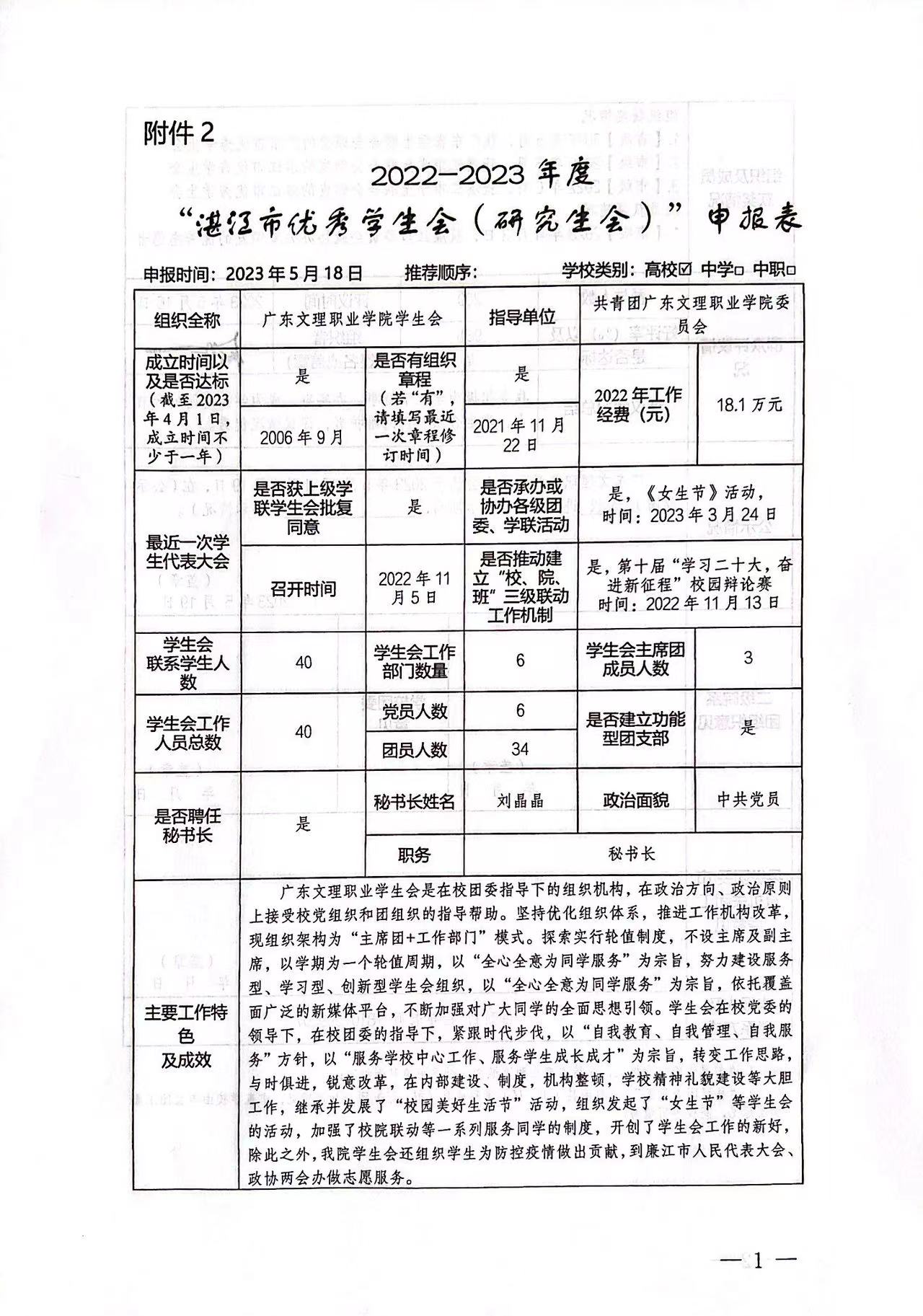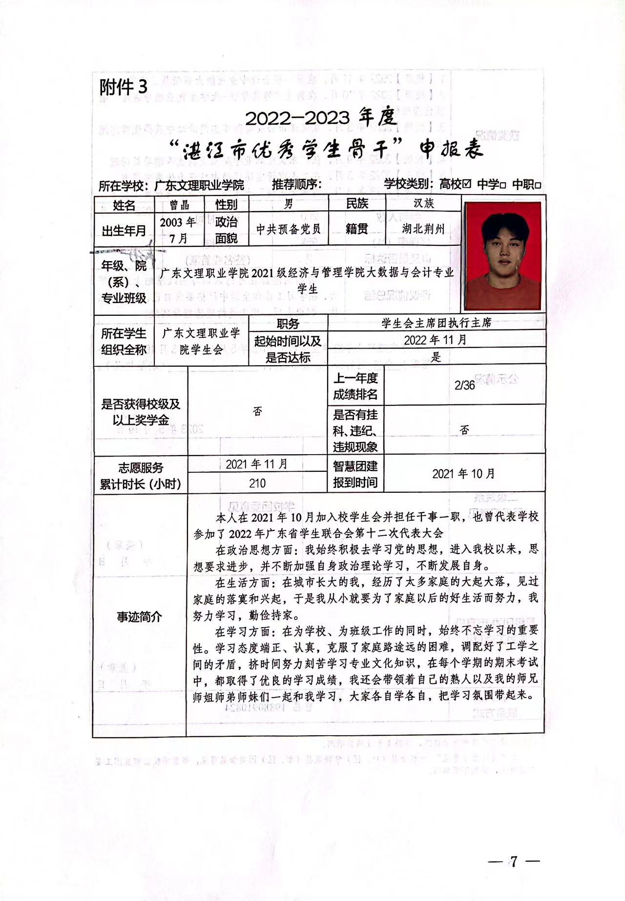 更多关于共青团广东文理职业学院委员会申报