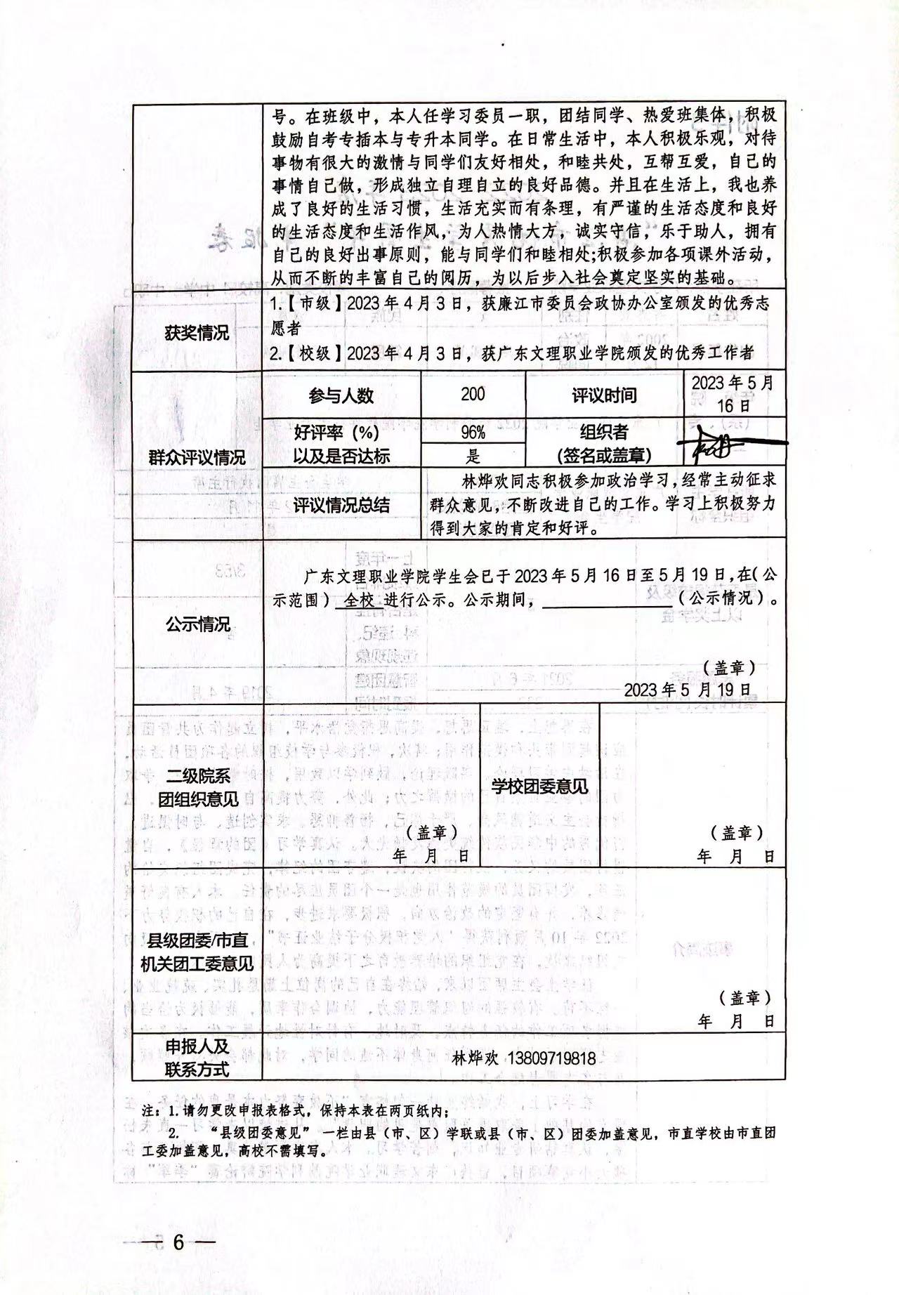 公示期为2023年5月16日至19日。公示期内,如有异议,请联系团委专职团干:陈英杰,联系方式:13410413557。