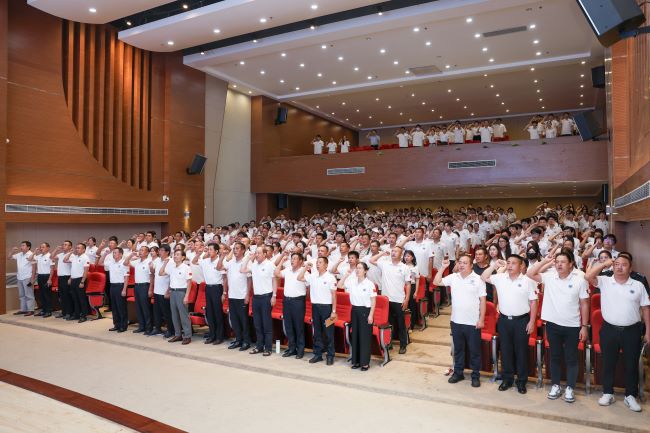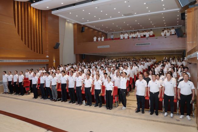 大会在庄严的《中华人民共和国国歌》中拉开序幕,伴随着铿锵有力的旋律,全体起立,表达对国家和教育事业的忠诚与敬爱。随后,全体人员在国旗下庄严宣誓,承诺将忠诚于教育事业,为国家培养出更多优秀人才而努力奋斗。