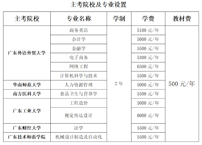 “专本同读”学制二年,学费是一年一交,共交两年。不包含教材资料费、报考费等代收代支费用。