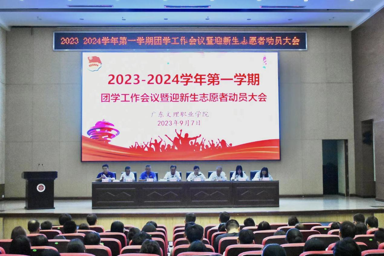 为进一步统筹部署团学工作、切实做好迎接2023级新生开学工作事宜,保证迎新工作顺利开展,我校于9月7日晚上7点在实训楼十楼报告厅举行“2023-2024学年第一学期团学工作会议暨迎新生志愿者动员大会”。