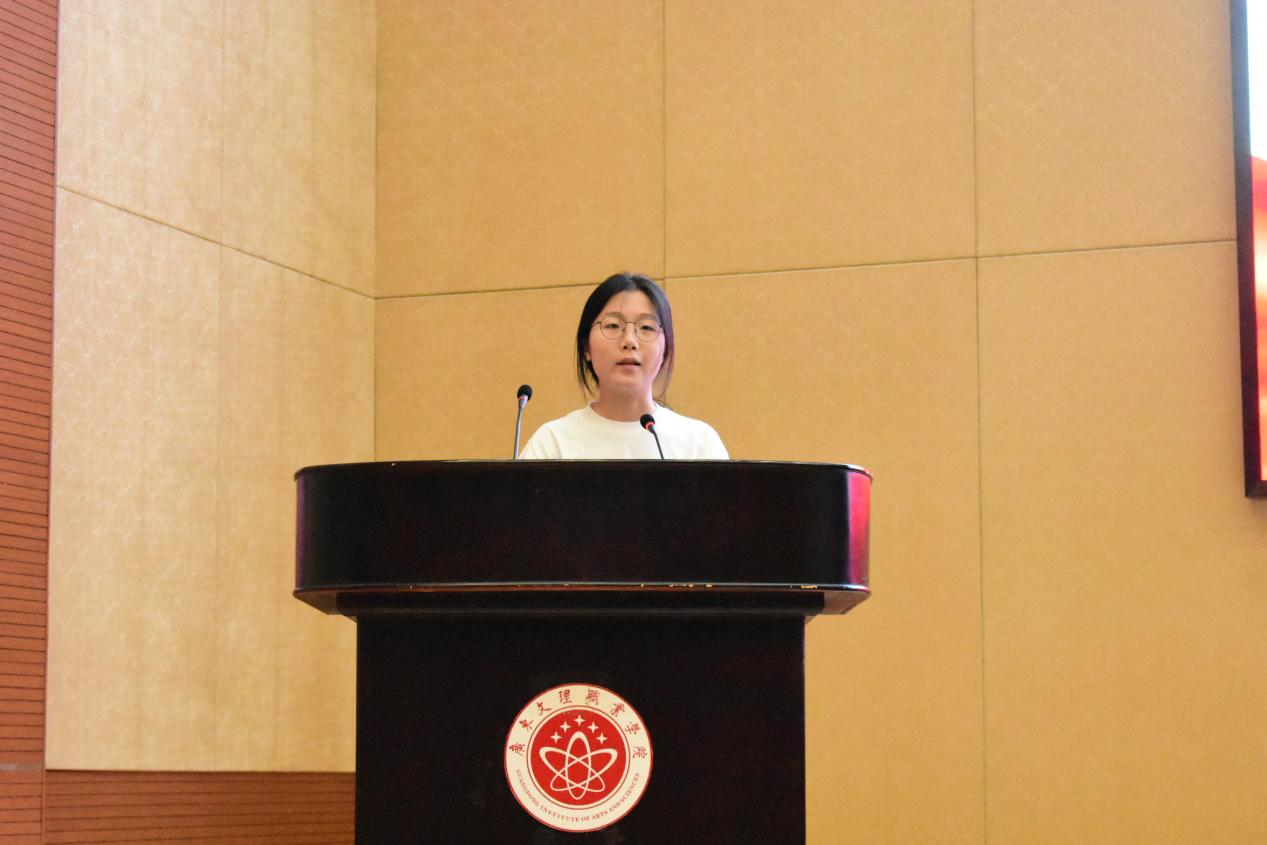 陈天韵同学在志愿者代表发言中承诺:将秉承志愿者“奉献、友爱、互助、进步”的精神,严格要求自己,遵守服务守则,牢记行为规范,了解服务技能,弘扬志愿者精神,在服务中展现自我,锻炼自我,绝不辜负学校对我们的期待和信任,将文理学院的青春风采和满腔热情展现给即将到来的师弟师妹们,以昂扬饱满的精神状态,展示文理志愿者的亮丽风采。