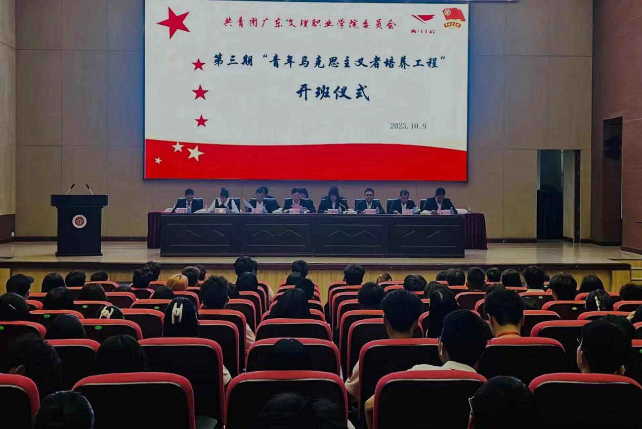 为全面贯彻落实习近平新时代中国特色社会主义思想,深入学习宣传贯彻党的二十大精神,贯彻落实习近平总书记关于青年工作的重要思想。进一步加强我校青年学生的政治引领,着力为党培养和输送坚定的青年政治骨干。2023年10月9日上午广东文理职业学2023-2024学年第三期“青年马克思主义者培养工程培训班开班仪式”在实训楼十楼学术报告厅顺利举行。校团委书记杨丹同志、校团委副书记刘晶晶同志、校团委宣传委员成钿同志、各二级学院团委书记、校团委干事周子龙同志、校团委干事陈戈同志出席开班仪式,“青马工程”培训班全体学员参加本次开班仪式。校团委书记杨丹同志主持开班式。