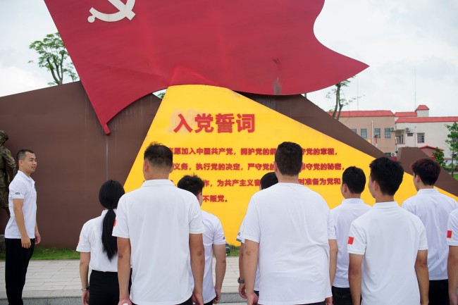 “我志愿加入中国共产党,拥护党的纲领,遵守党的章程,履行党员义务,执行党的决定……”全体党员在党旗下庄严宣誓,重温入党誓词,以此坚定理想信念。