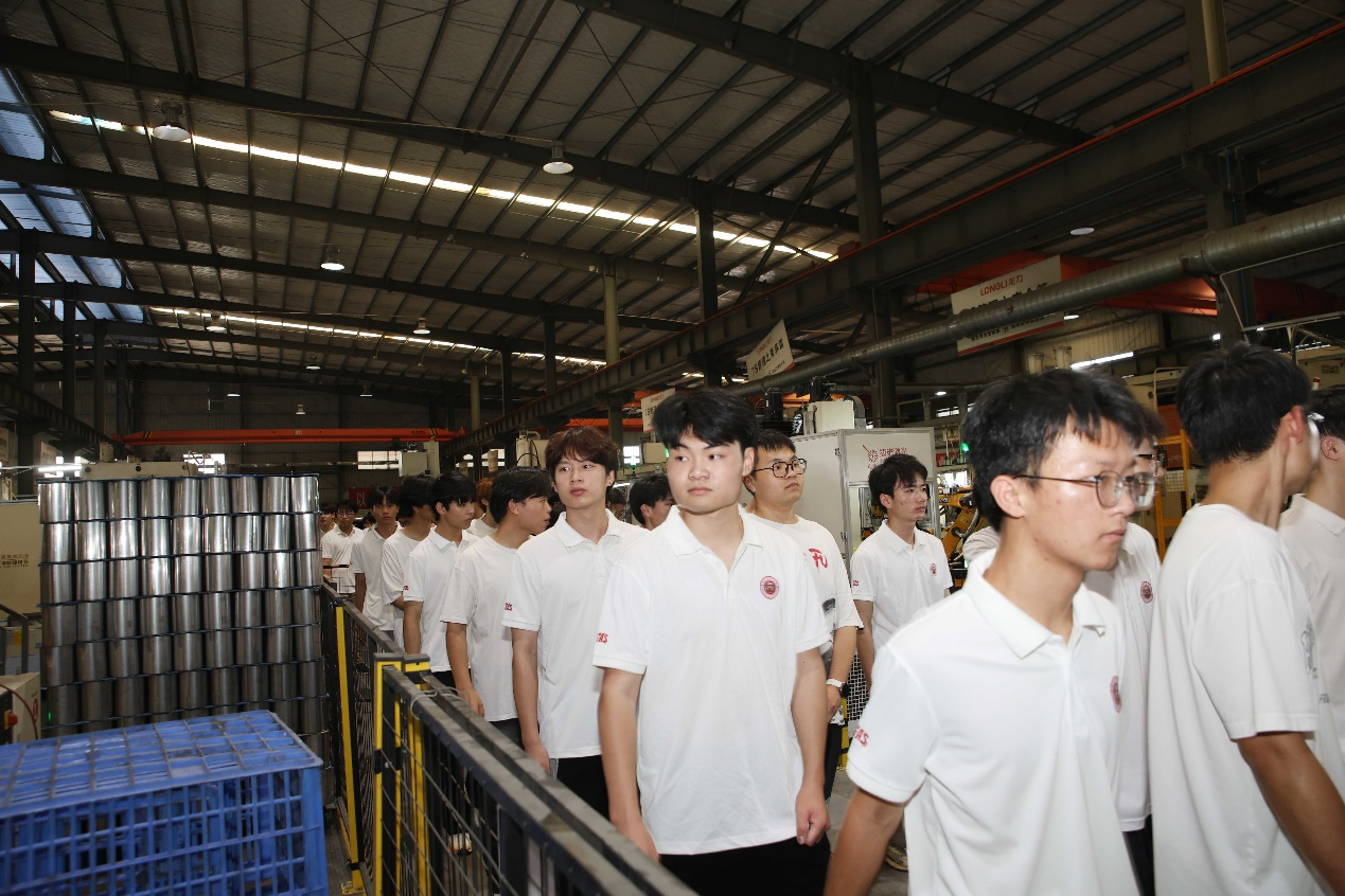 在展厅中,同学们深入了解企业的发展历程、核心技术及产品矩阵;在冲压车间,自动化设备的高效运作与精密模具的加工流程令大家赞叹不已;装配车间内,工人们严谨的流水线操作与智能化管理系统的应用,生动展现了传统制造与现代技术的完美融合。企业技术骨干还现场讲解了岗位技能要求,强调“精益求精”的工匠精神对职业发展的重要性。