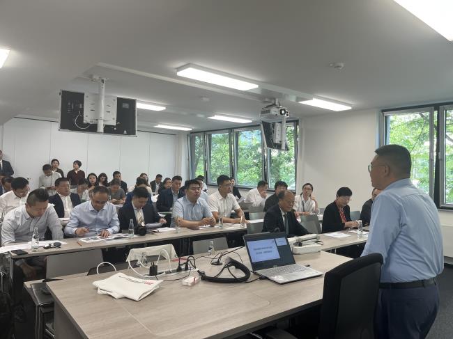 宣依娜副校长还代表团出席了中华人民共和国驻法兰克福总领事馆座谈会,围绕德国职业教育的政策和发展模式、德国高校关于实践课程的设置、德国政府对私立大学的管理和支持等问题进行了深入的交流探讨。