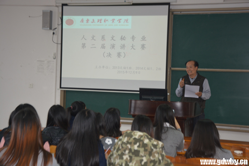 本次大赛是由2013级文秘1班与2014级文秘1、2班联合举办,并在两天前举行了初赛,七名选手晋级决赛。决赛的评委由陈德兴副主任、文秘专业负责人李贵龙、文秘专业教师袁利杰、辅导员朱晓美担任。2013级文秘1班梁丽、张斯茵同学担任主持人。