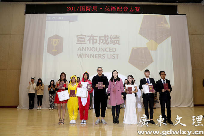 为展示学院大学生英语学习成果,丰富外语学习生活,11月21日学院在实训楼楼学术报告厅举行国际周第三届英语配音大赛总决赛,欧倩仪、陈悦洋、罗莹莹等3名同学获得一等奖;黎丽红、赖键君等3名同学获得二等奖,何俏丽、刘小春、肖樱花等3名同学获得三等奖。