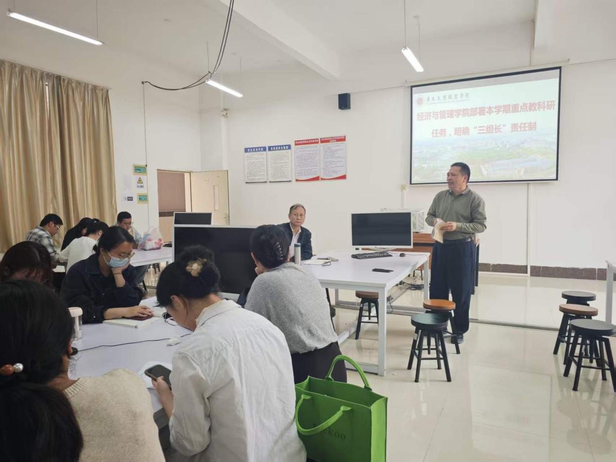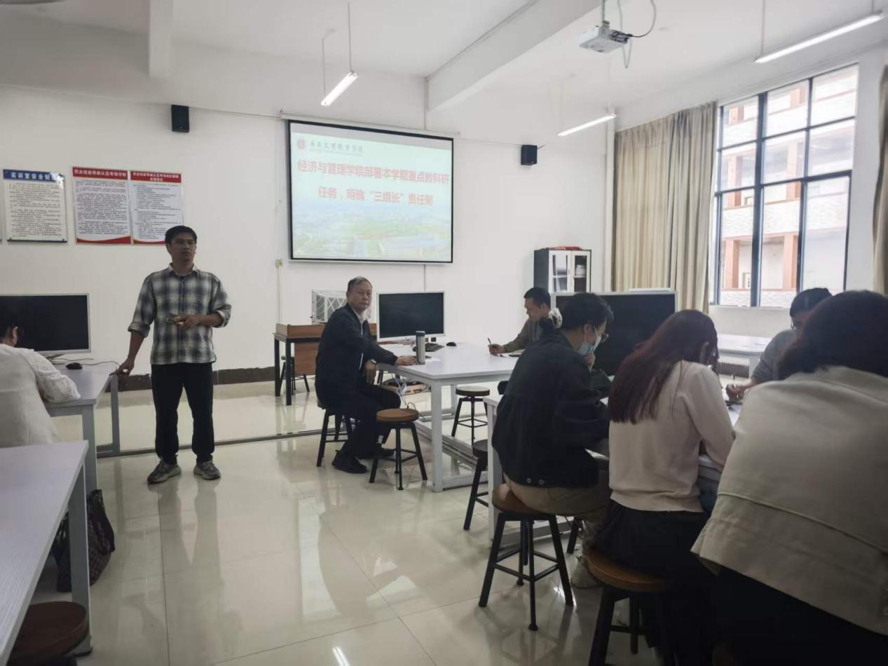 2026年3月18日下午15:00我院在科技大楼A516会议室召开本学期重点教科研任务部署会议。会议以明确“三组长”责任制为抓手,全面擘画新学期教育教学高质量发展蓝图。院长幸理教授、吴文副院长及经济与管理学院全体教师共同参会。