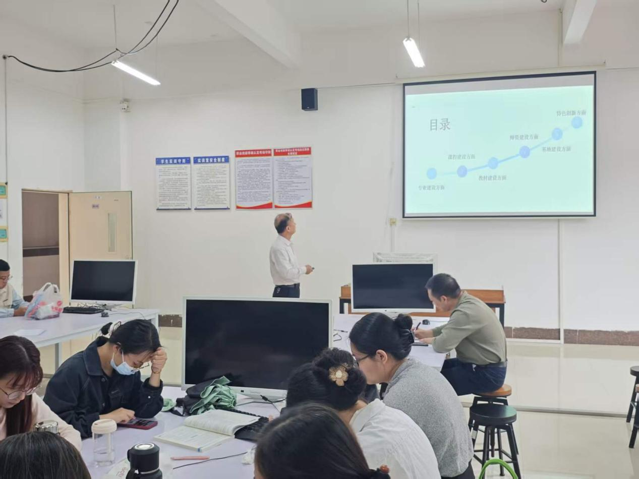 随后,会议进入第二项议程廖明孚老师就毕业生实习、创新创业竞赛及强化学生参与实践工作作详细安排。廖明孚老师强调各专业教师要引导学生积极投身创新创业实践,以实干精神锤炼专业本领,进一步提升实践教学质量。廖明孚老师指出,各专业教师要切实提升实验课授课能力,确保实践教学环节落地见效,真正地让课堂“活”起来、学生“动”起来。