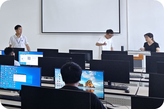 信息工程学院的本次教学巡查组由学院铁新城副院长带队,信息技术综合教研室主任梁河金老师,以及揭明佳老师等组成。由于当日上午我院绝大多数上课的场所都在实训楼,巡查组于上午第1节课开始,依次检查巡视了实训楼的A304、A309、A314、A406、C402、C511、A511、A702、A717等实验实训室以及B404、B405两间公共机房,并与任课老师进行了交流。