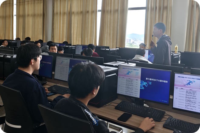 为深化产教融合,推动“以赛促学、以赛促教、以赛促改、以赛促建”的教学指导思想落地,近日,广东文理职业学院华为ICT学院联合深圳市讯方技术股份有限公司(以下简称讯方公司)正在举办第十届华为ICT大赛赛前辅导培训活动。本次活动采用“线上直播+线下指导”相结合的创新模式,由企业和学校资深讲师组成的团队,围绕大赛的核心内容展开系统性规范性的辅导,助力学生夯实专业基础、提升实战能力。