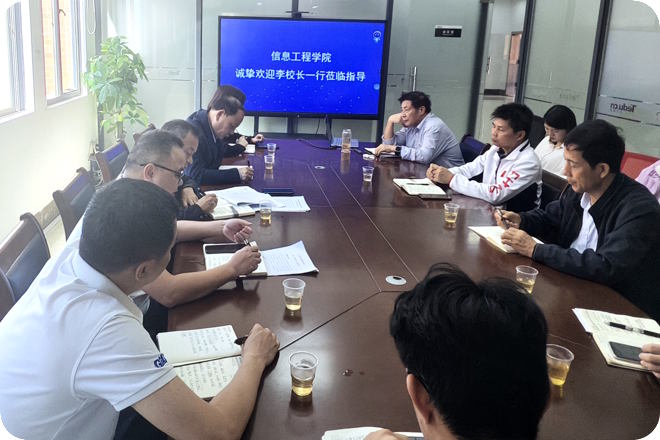 张佐营校长助理也向李校长汇报了信息工程学院的发展历史、现在承担的计算机网络技术高水平专业群的情况、华为ICT学院的办学情况等。张校助指出,我校与讯方公司的合作,是以我校为主体进行办学,充分发挥校企合作的潜力。信息技术类的课程,要使项目化案例化的教学落地,让学生掌握技术技能。