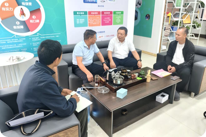 12月5日下午,岭南师范学院计算机与智能教育学院党委李海文书记,来我院开展校际合作交流活动。我院马才学院长、王海龙书记及铁新城副院长等在实训楼A508办公室热情接待了李海文书记一行。