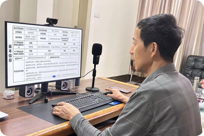 广东文理职业学院华为ICT学院(以下简称广文理华为ICT学院)成立于2025年1月3日,并于2025年9月开始招5个专业的学生。刚成立的ICT学院是注册级华为ICT学院,由广东文理职业学院、华为技术有限公司(以下简称华为公司)和深圳市讯方技术股份有限公司(以下简称讯方公司)合作办学。