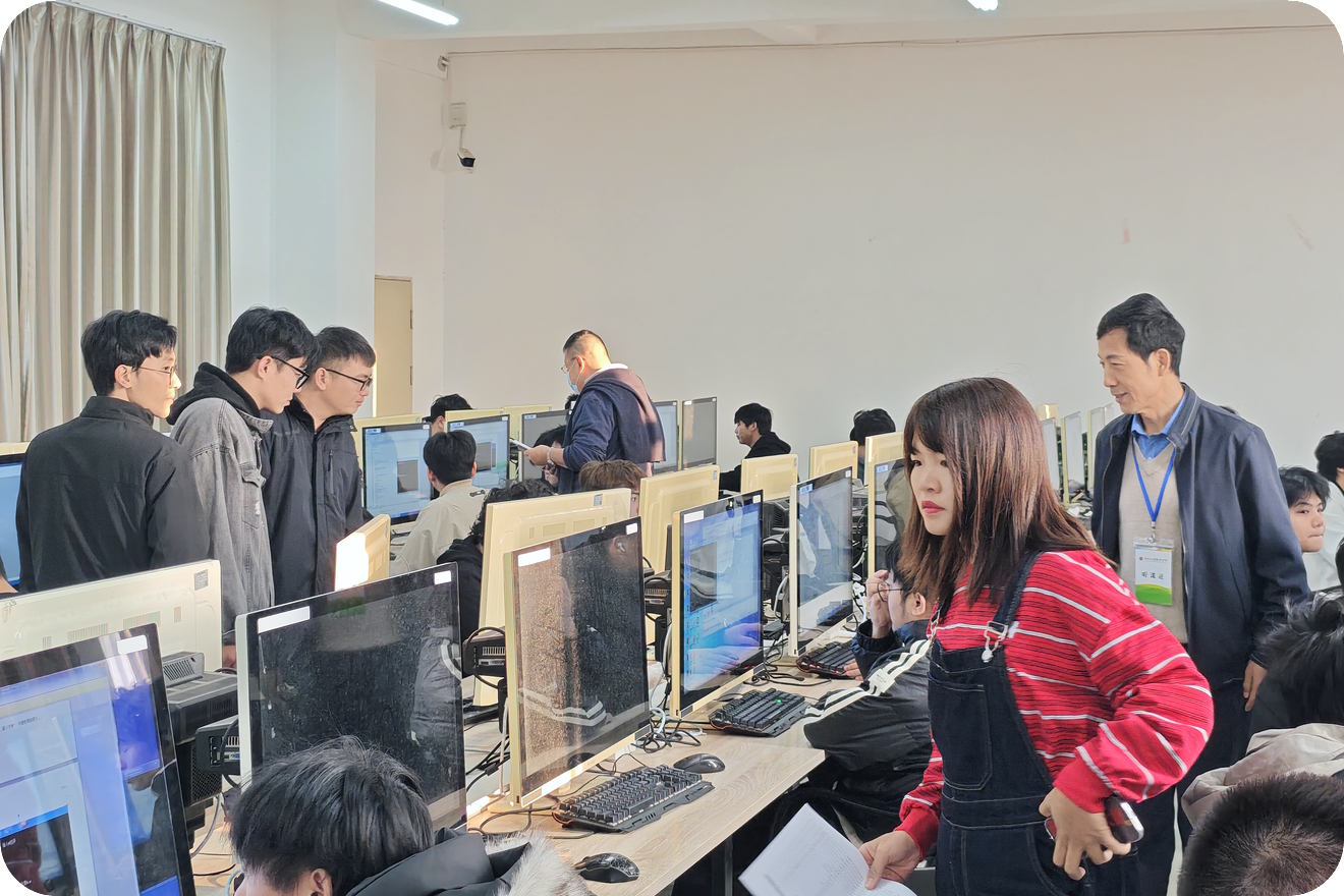 检查组巡查了A314软件实训室、C303公共机房、A702机房等多个考场,检查了解考试安排、考场的环境、纪律、监考人员到位等情况,协助监考老师处理考场突发事件。并提醒监考老师要严格遵循学校有关考试的规章制度,维护良好的考风考纪。