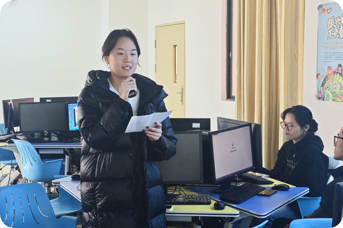 学生代表,2023级计算机应用技术专业1班的学生常小艺发言。她说道:“很高兴能够在大学时光时遇到孙老师和谭老师,遇到两位认真负责的老师。是您们教会了我很多专业知识,是您们,传递给我为人师表的教师作风。您们兢兢业业、不辞辛苦,培养了一批又一批的学生。在此,我代表已毕业和在校的学生,真诚感谢两位恩师的对学生们的辛苦付出和良苦用心。”