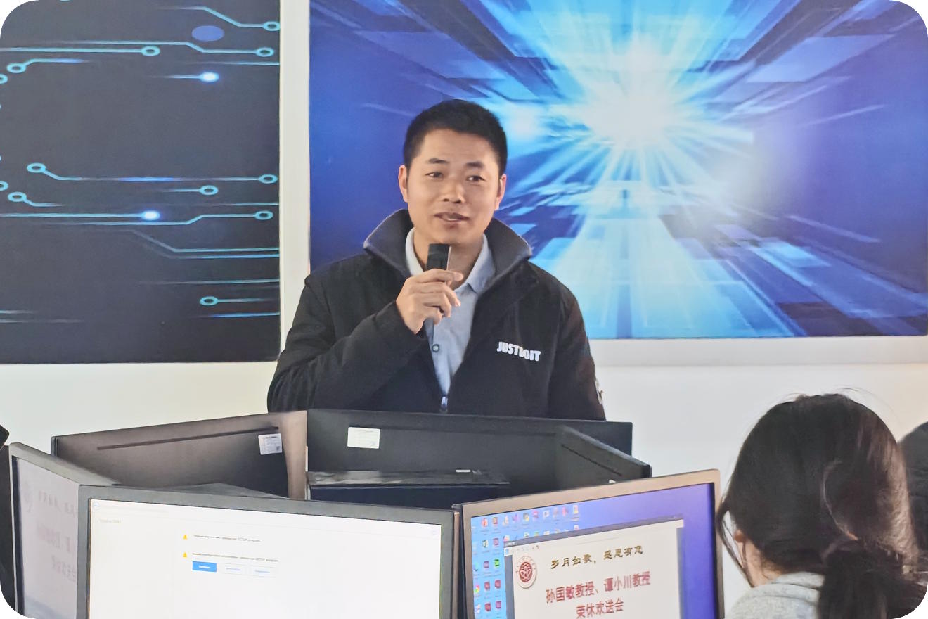 接下来,孙国敏教授作了致谢发言。他说:“感谢大家,非常感谢。我也非常珍惜这些年来与大家的共事,尤其是与一些老教师的共事。我将永远铭记信息工程学院、铭记广东文理职业学院。谢谢大家!”