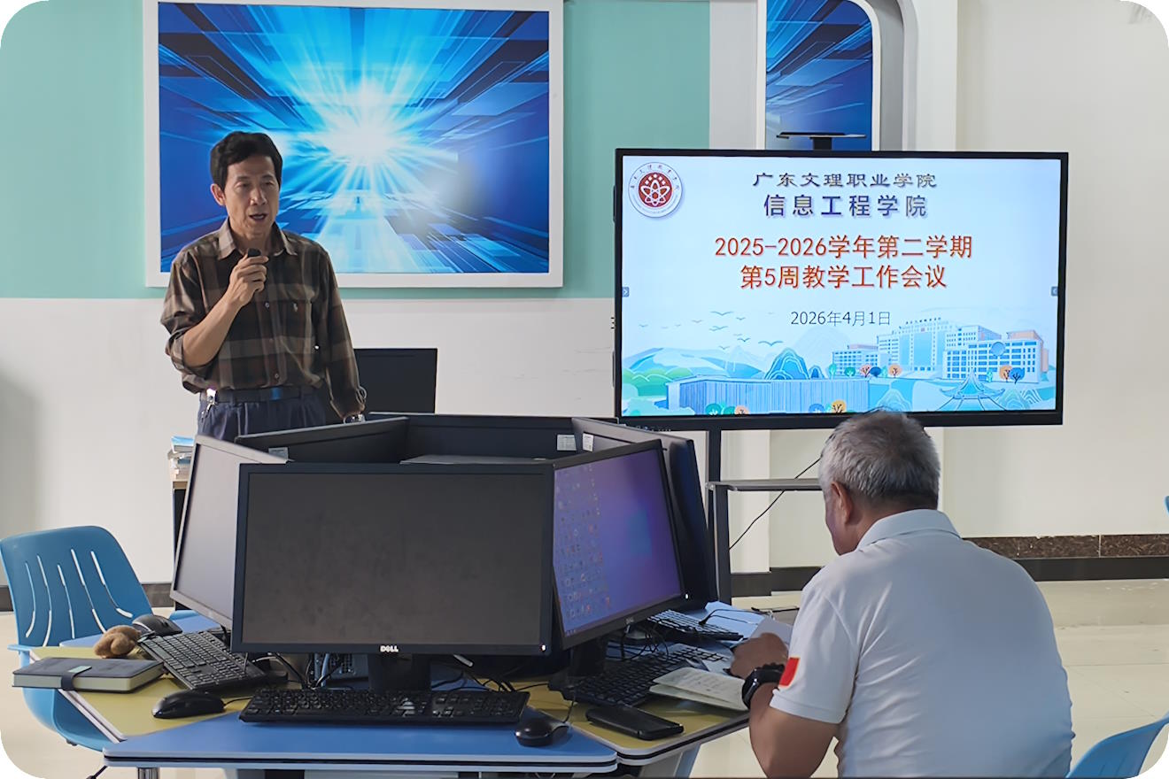 4月1日下午,信息工程学院在科技大楼A511实训室召开了本学期第五周的教学工作会议。会议由铁新城副院长主持,马才学院长及全院教师参加了会议,遵照学校的要求,我院辅导员吴光杰老师也参加了会议。