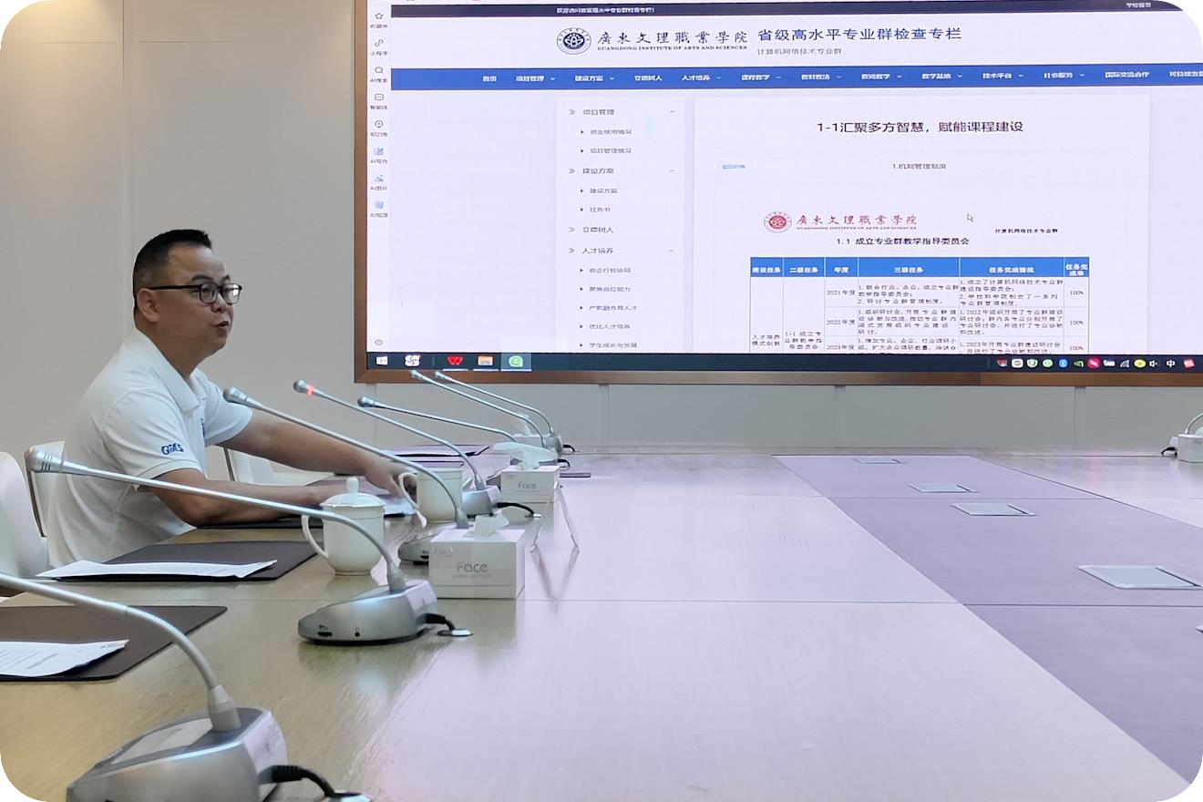 4月8日下午,广东文理职业学院在图书馆7楼视频会议室召开了计算机网络技术高水平专业群验收工作会议。教务处黄桦处长主持会议,教务处陈彦霖副处长、林丽佳副处长,以及招生就业指导中心、人事处、财务处、实训与社会合作中心等部门的负责人参加了会议。我院马才学院长、铁新城副院长以及叶晓燕老师等人也参加了会议。