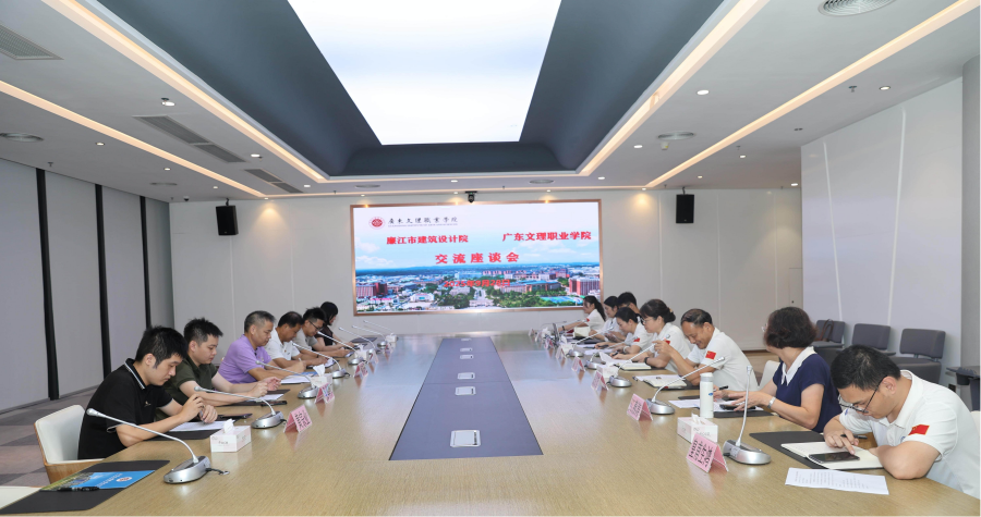 2025年9月28日,广东文理职业学院与廉江市建筑设计院“深化校地合作,共筑人才高地,赋能城市发展”主题座谈会在图书馆七楼视频会议室成功举行。廉江市建筑设计院党委书记何志强、办公室主任樊开发、施工图审查中心主任吴华泽、结构室主任魏弟、设备室主任黄宗业,以及我校副校长薛芳、校长助理张佐营、建筑工程学院副院长余莉莉、江燕涛等双方代表出席会议。