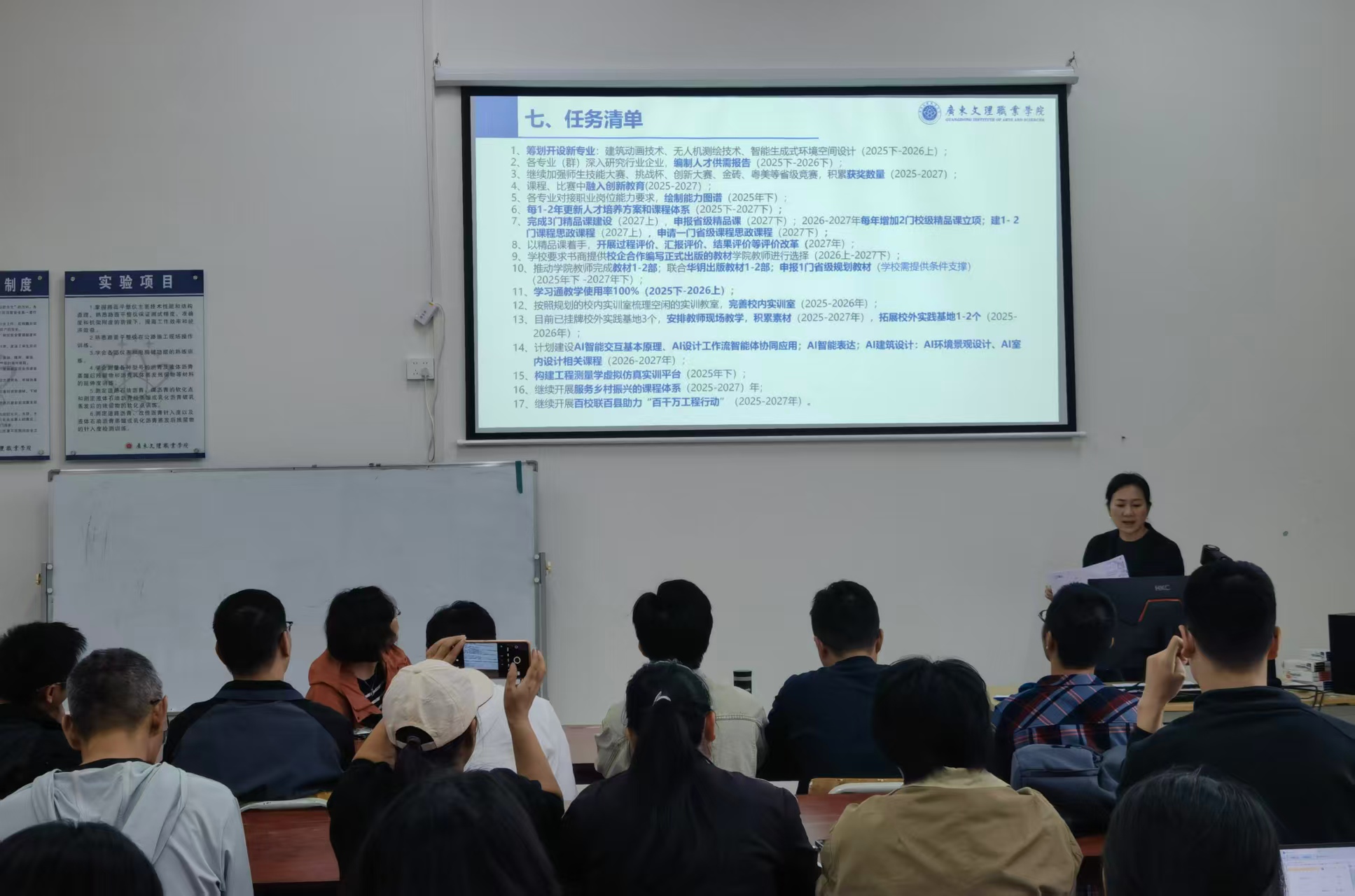 副院长余莉莉详细解读了学校教学质量评估体系,强调“以评促建、以评促改”的工作方针。评估指标涵盖专业建设、课程体系、教材开发、师资配置、实训实习及特色创新六大维度,要求各教研室对标对表,形成自查清单。学院后续将重点推进精品课程建设、新形态教材编写及产教融合项目,确保评估工作落到实处。